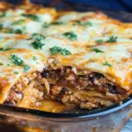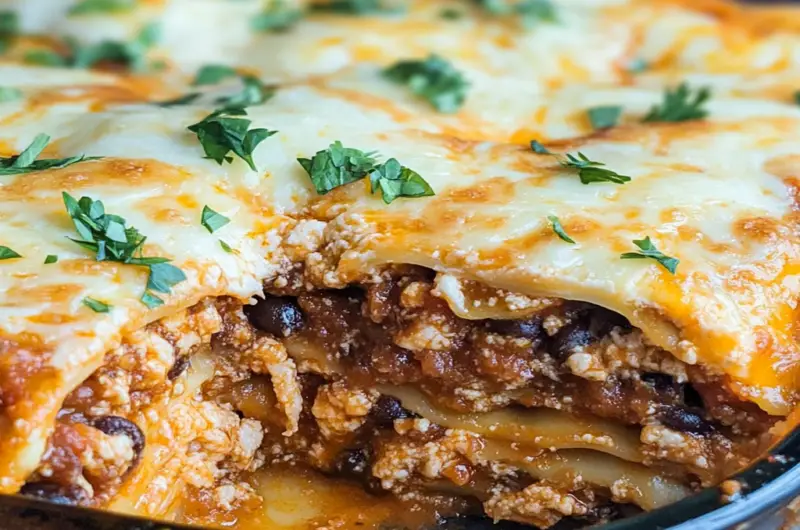 Taco Lasagna Bake is a fusion dish that combines elements of traditional lasagna with popular taco flavors. Instead of pasta sheets, tortillas serve as layers between seasoned ground beef or turkey, cheese, beans, salsa, and other toppings typical in tacos. The result is a hearty meal that captures all the beloved flavors of tacos while maintaining the comforting essence of lasagna. It’s perfect for family dinners or gatherings where you want something delicious yet easy to prepare.