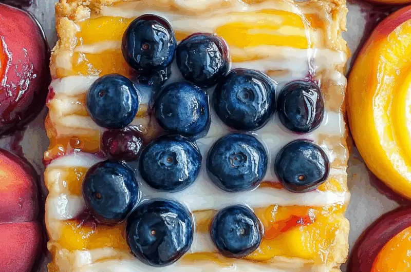 Indulge in the vibrant flavors of summer with this Easy Blueberry Peach Tart topped with a luscious vanilla glaze. This delightful dessert features a buttery puff pastry crust layered with juicy blueberries and ripe peaches, all enhanced by a sweet vanilla drizzle. Perfect for gatherings or a cozy family dinner, this tart is as visually appealing as it is delicious, making it an irresistible treat for any occasion.