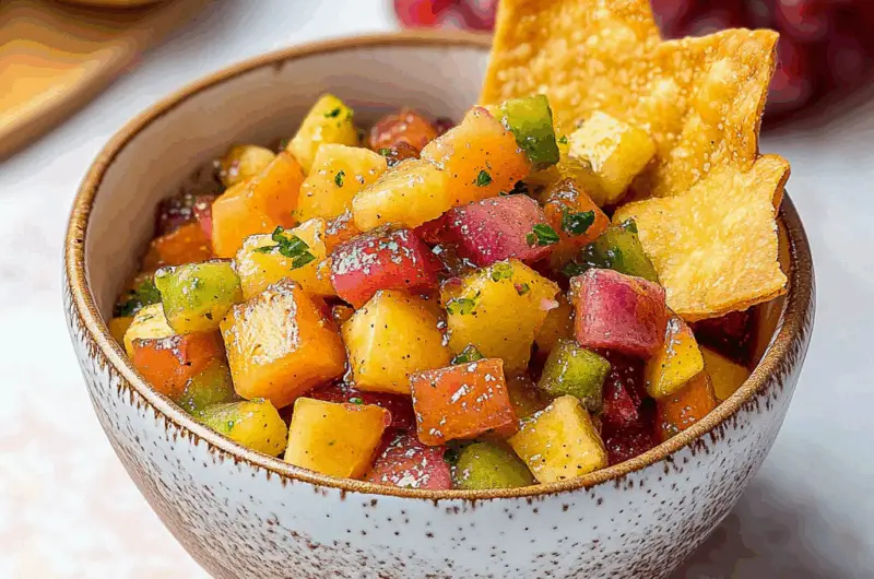 Fruit salsa with pie crust chips is a vibrant and refreshing treat that adds a delightful twist to any gathering. This colorful dish combines the natural sweetness of fresh fruits with crunchy, homemade pie crust chips for the perfect balance of flavors and textures. Whether you’re hosting a summer barbecue, planning a family get-together, or simply looking for a creative snack, this fruit salsa is sure to impress. The combination of juicy fruits like strawberries, kiwi, and mango creates a tropical sensation that’s hard to resist. refreshing orange creamsicle cheesecake Paired with crispy pie crust chips, this dish not only looks stunning but also offers an enjoyable crunch that complements the soft fruit beautifully. Plus, it’s easy to prepare, making it a great option for those who want to whip up something special without spending hours in the kitchen. Let’s dive into why you’ll fall in love with this fruit salsa and its accompanying pie crust chips. For more inspiration, check out this Cottage Cheese Mac And Cheese recipe.