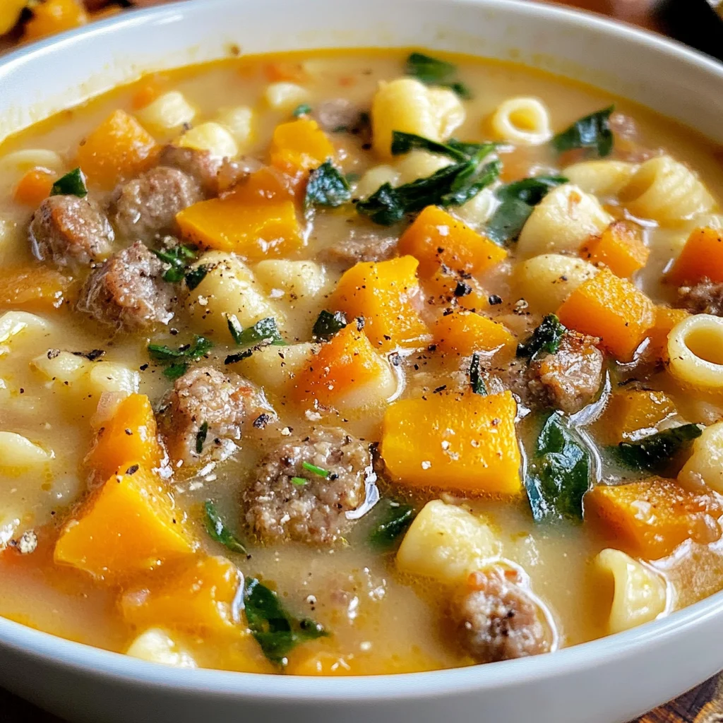Roasted Butternut and Sausage Soup is a warm, comforting dish perfect for chilly evenings or family gatherings. This delightful soup features caramelized butternut squash and savory Italian sausage, combined with aromatic vegetables and fresh spinach. The creamy broth envelops tender pasta, making it a satisfying meal for any occasion. You’ll love how easy it is to prepare and the robust flavors it brings to your table.